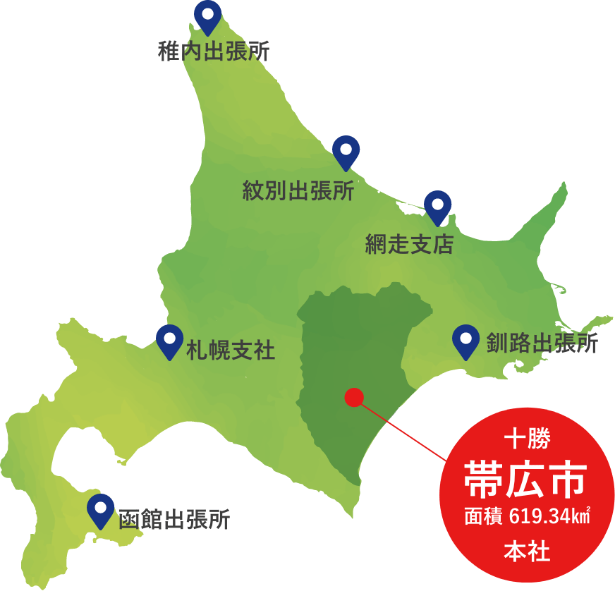 当社は、北海道十勝の帯広市に本社がある、建設コンサルタントと情報処理サービスの総合コンサルタント会社です。1959年に社員4名の測量会社「北海道測量図工社」としてスタートし、2019年に設立60周年を迎えました。「農業・環境・まちづくり」をテーマに「環境にやさしい地域社会の形成」を目指し、高い専門技術と豊富な経験で、地域社会やお客さまのニーズにお応えしています。